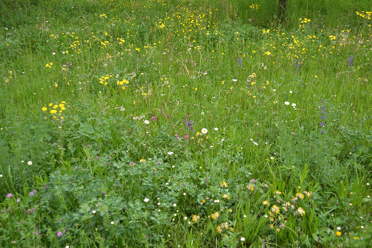 Contraste entre un gazon uni et un gazon fleuri