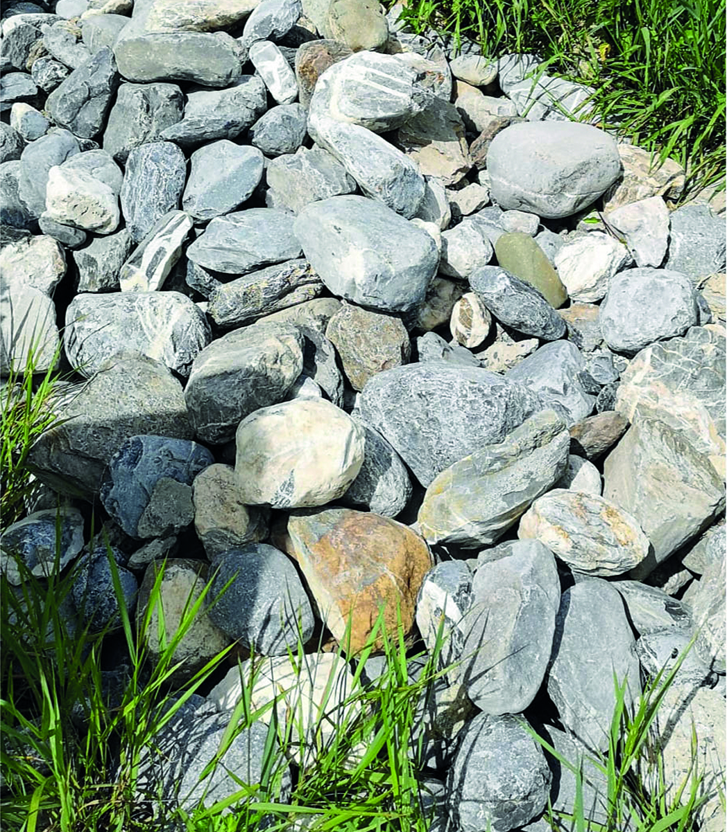 Des plantes basses, rampantes, comme le lierre, peuvent partiellement recouvrir les pierres. Des îlots de végétation herbacée apparaîtrons entre les pierres.