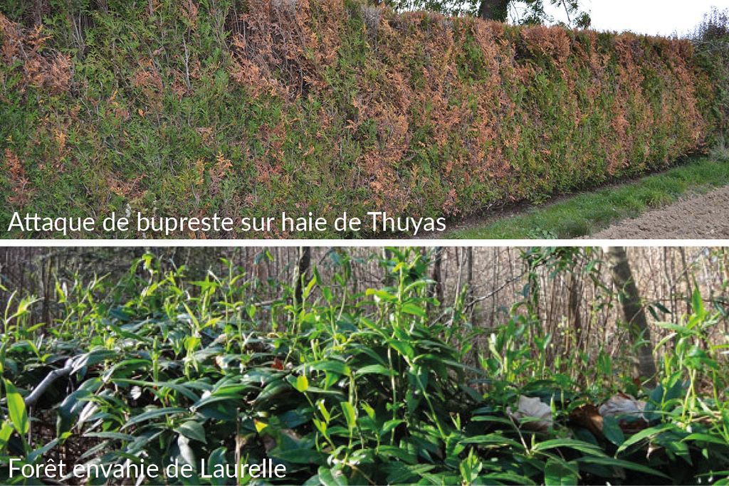 D’une part, ces haies sont composées d’espèces exotiques moins bien adaptées à nos régions. D’autre part, elles se présentent généralement en monoculture et sont donc beaucoup plus sensibles aux maladies et aux ravageurs. Si une maladie, un champignon ou un insecte les attaque, la propagation est rapide, comme, par exemple, le bupreste qui s’en prend au thuya. En général, le premier réflexe est de traiter la haie avec des produits chimiques, ce qui aggrave la situation en appauvrissant la biodiversité.