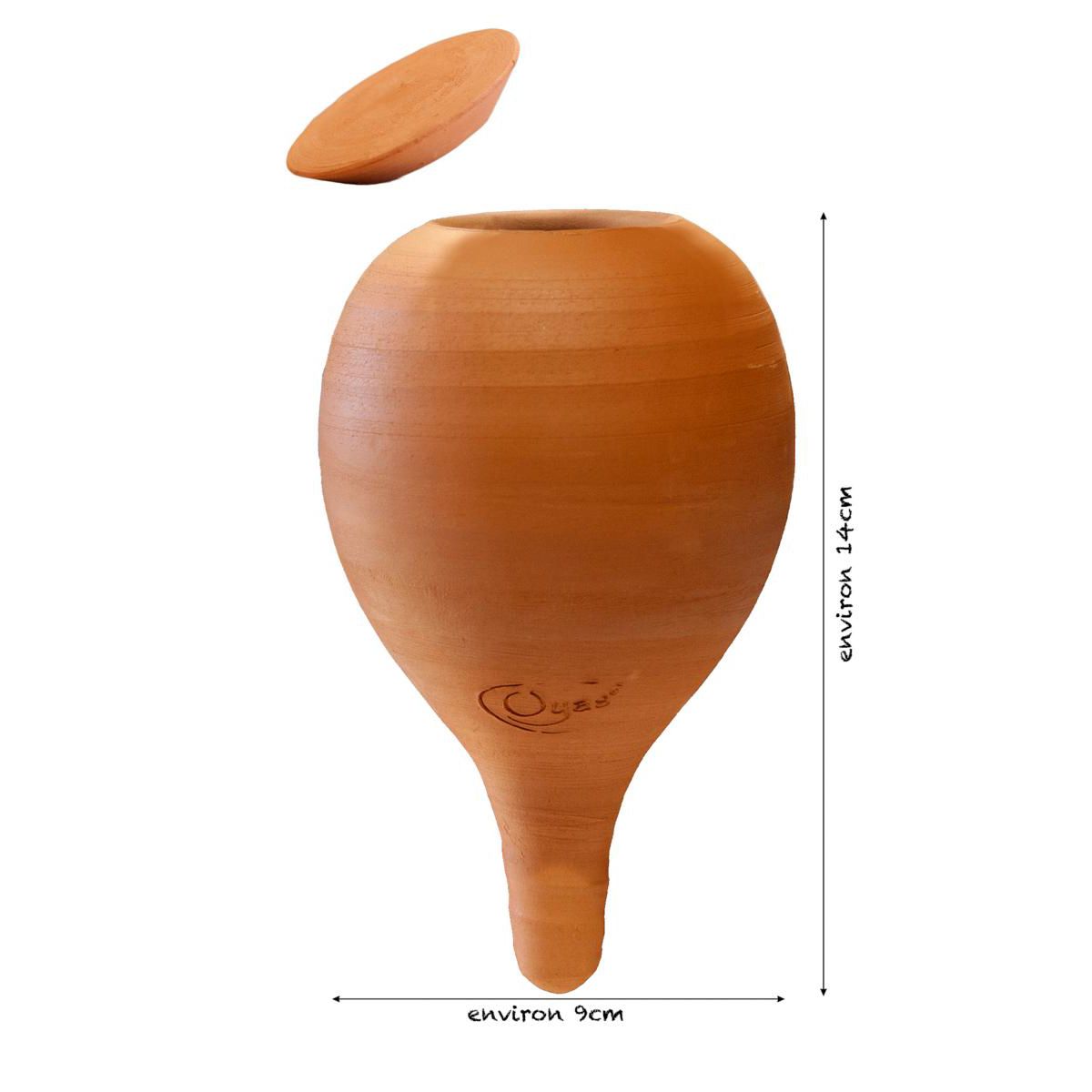 Les Oyas sont des pots en céramique microporeuse que l’on enterre près de ses plantations et que l’on remplit d’eau. Elles diffusent lentement dans le sol l’humidité nécessaire à la plante.