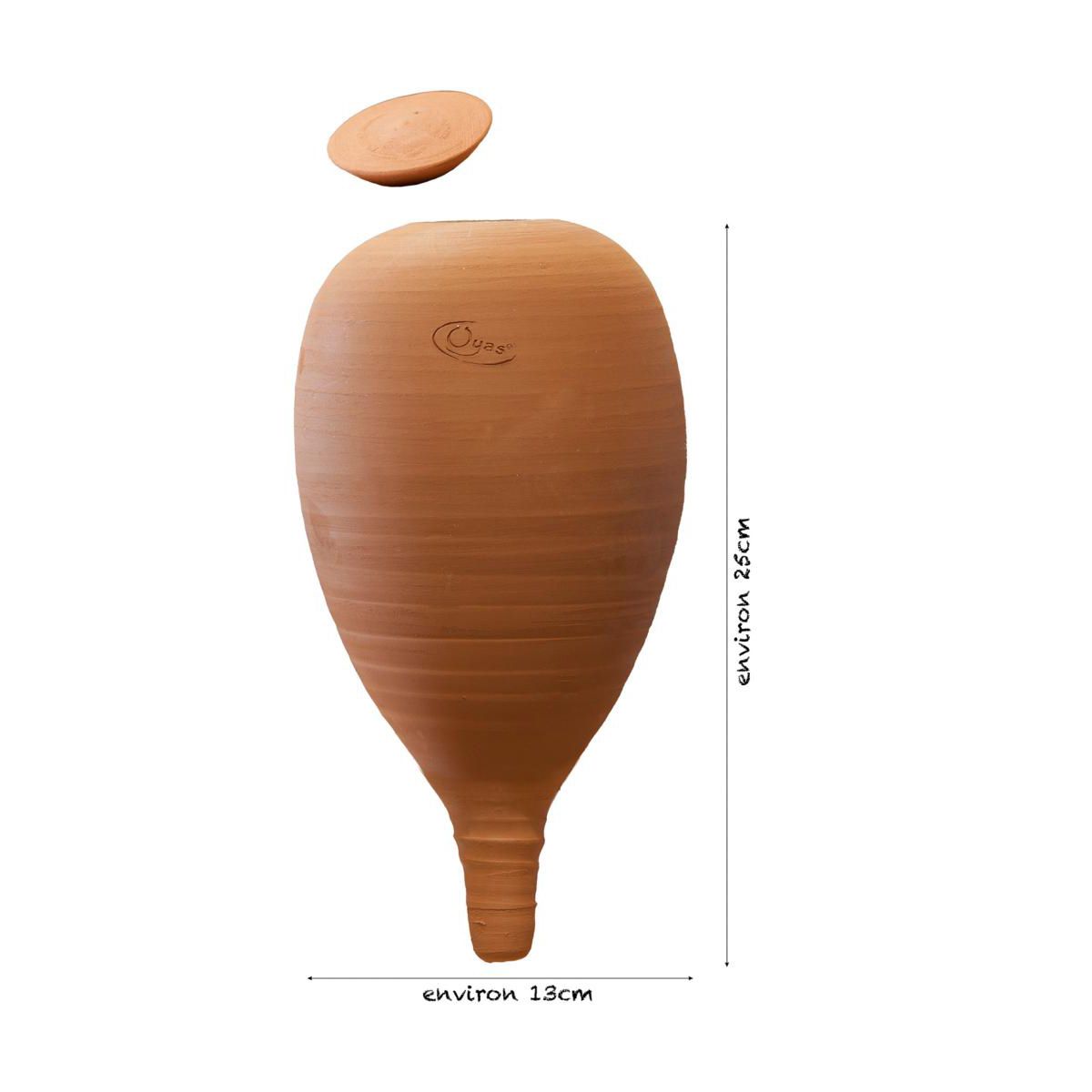 Les Oyas sont des pots en céramique microporeuse que l’on enterre près de ses plantations et que l’on remplit d’eau. Elles diffusent lentement dans le sol l’humidité nécessaire à la plante.